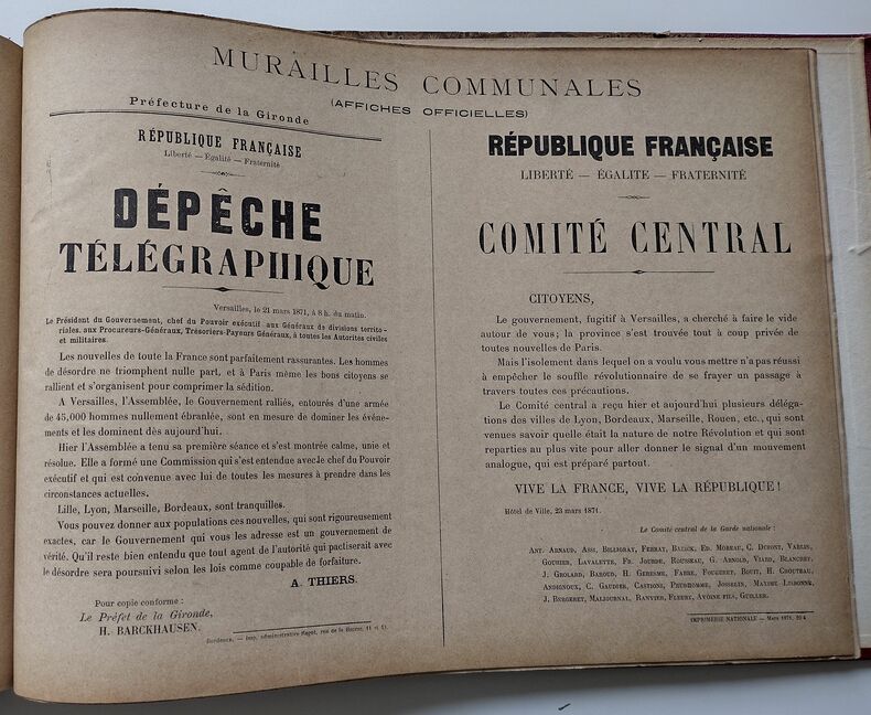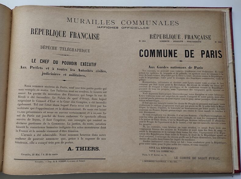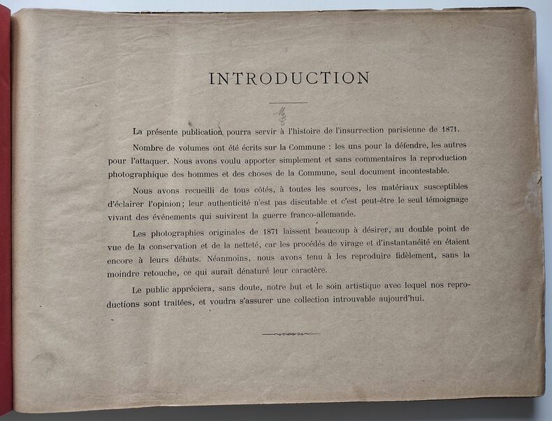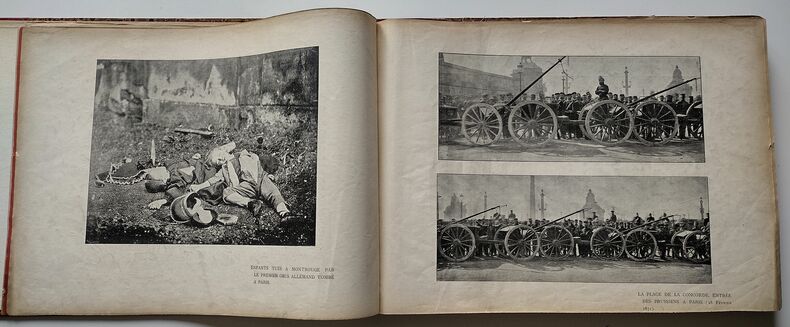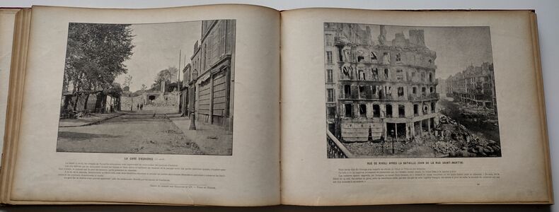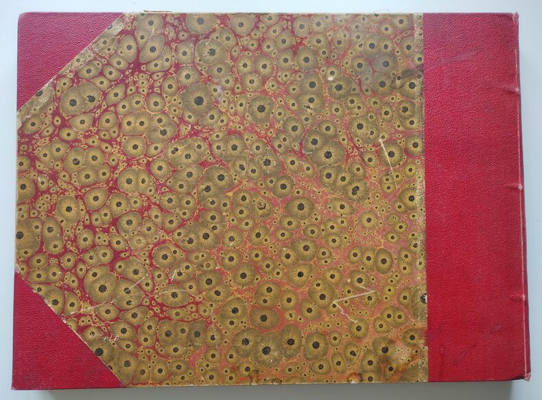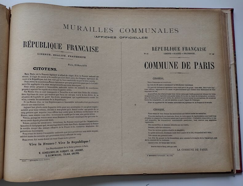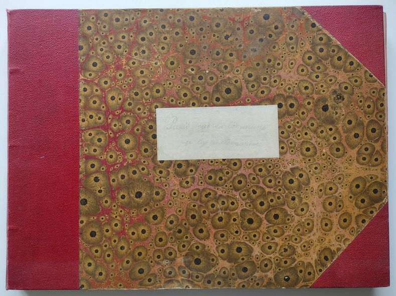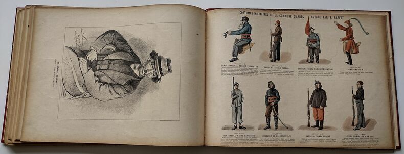 Ed. Paris, Bureau de vente, 17, Rue du Croissant, sd (circa 1890), non paginé, In-folio (format à l'italienne). Ouvrage complet des fascicules parus initialement en livraisons. Ici la couverture du fascicule n°9 conservée. Quatre pages contenant 32 costumes militaires en couleurs de la Commune d'après A. Raffet. Bon état, reliure demi-chagrin bordeaux à coins, plats cartonnés illustrés (étiquette de titre papier collée sur le plat supérieur, légères usures/salissures sur le dos et les plats, coiffes frottés, coins légèrement cornés). Intérieur très frais (rares rousseurs et/ou salissures, pages légèrement jaunies sur les contours, sinon sans annotations ni phrases/illustrations soulignées. Bon exemplaire.