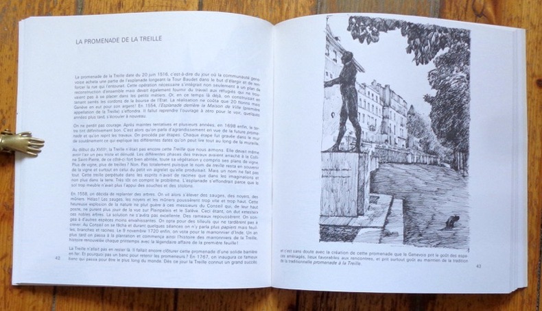 Exemplaire du tirage de tête, dit de luxe, accompagné du tirage volant d'une illustration(La fontaine de l'Escalade), signée par Thierry Clauson. Exemplaire numéroté 75, sans mention de tirage.