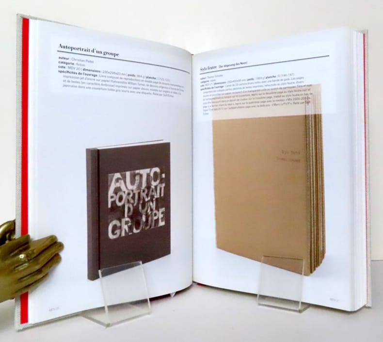 Les 115 livres sont des oeuvres de Luc Andrié, Joan Ayrton, Marc Batalla, Murièle Begert, Yves Berger, Flynn Maria Bergmann, Maria Bill, Laurence Boissier, Pierre Bonard, Lorna Bornand, Christian Bovey, Stéphane Bresset, Françoise Bridel, François Burland, Serge Cantero. Geneviève Capitanio, Barbara Cardinale, Domenico Carli, Siripoj Chamroenvidhya, Olivier Christinat, Frédéric Clot, Olivier Cuendet, David Curchod, Irène Sevim Dacunha, Marc De Bernardis, Sofi Eicher, Olivier Estoppey, Guillaume Estoppey, Ivan Farron, Pascale Favre, Barbara Fédier, Daniel Frank, Philippe Fretz, Stéphane Fretz, Alexandre Friederich, Anne-Marie Agile Gbindoun, Nicolas Geiser, Hélène Gerster, Davide Giovanzana, Christian Girard, Luisanna Gonzalez Quattrini, Florence Grivel, Michèle Haenni, Christoph Hänsli, Sarah Hildebrand, Tito Honegger, Thérèse Houyoux, Marie-José Imsand, Joëlle Isoz, Jacques Jouet, Suzanne Kasser, Olga Kokcharova, Katharina Kreil, Henry Lambert, Hervé Laurent, Philippe Lipcare, Elisabeth Llach, Alonso Llorente, Alexandre Loye, Maoro, Luc Marelli, Line Marquis, Céline Masson, Annette Merkenthaler, Sylvie Mermoud, Marcel Miracle, Manuel Müller, Muma, Jean Nazelle, Zanat Nova, Olphaert den Otter, Ann Pelikan, Christian Pellet, Anne Peverelli, Stéphanie Pfister, Projet Socrate, Jie Qiu, Théodora Quiriconi, Fabienne Radi, Michael Rampa, Hubert Renard, Claudia Renna, Geneviève Romang, Yves Rosset, Daniel Ruggiero, Olivier Saudan, Dan Scher, Thomas Schunke, Christine Sefolosha, Jérôme Stettler, Julia Sørensen, Claude Tabarini, Claude-Hubert Tatot, Alexia Turlin, Vivianne Van Singer, Jessica Vaucher, Pierre Vogt, Zabu Wahlen, Claudius Weber, Nathalie Wetzel, Eric Winarto, George Wingate, Stéphane Zaech, Zaric et Zivo.