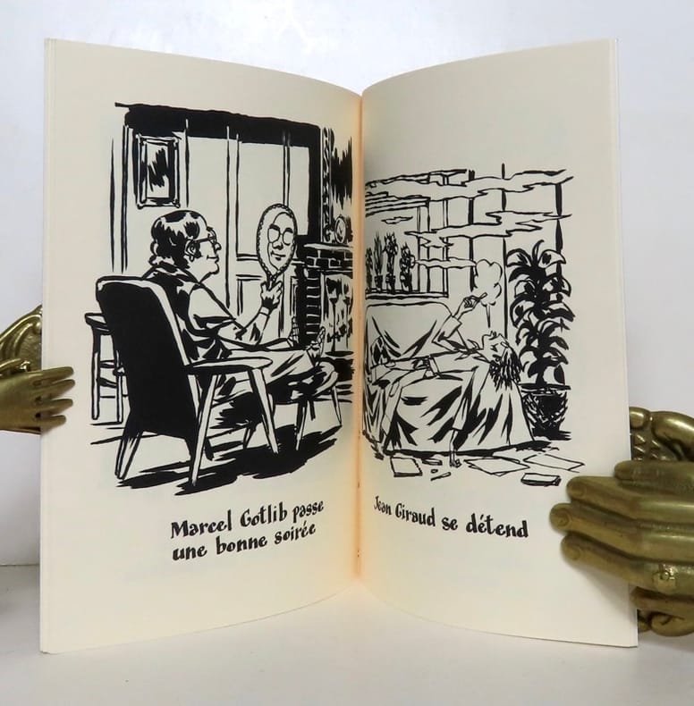 Editions le 9ème Monde 2004. In-16 broché non paginé, d'environ 40 pages au format 16 x 12 cm. Couverture illustrée. Dos carré. Plats et intérieur frais. Couverture, dessins en noir légendés par François Ayroles. Edition originale en état superbe. Précieux exemplaire, enrichi d'un superbe dessin original, au crayon noir, situé au verso du 1er plat, signé par François Ayroles.