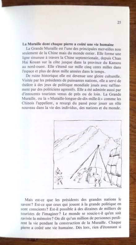 "La Grande Muraille est l'une des merveilles non seulement de la Chine mais du monde entier. Des chefs d’État puissants et des milliers de touristes vont l'admirer chaque année.Mais ces chefs d’États le savent-ils? Les politiciens en sont-ils conscients? Les touristes se l'imaginent-ils? Notre monde s'en soucie-t-il? Un million de personnes, dit-on, périrent durant la construction de cette merveille. chaque pierre de la Grande Muraille a coûté une vie humaine. Les Larmes de Madame Meng raconte un épisode devenu légendaire de cette histoire tragique. Le théologien chinois Choan Seng Song, de Taïwan, l'utilise comme parabole pour nous amener à une réflexion chrétienne sur le pouvoir politique, la souffrance et l'espoir du peuple."