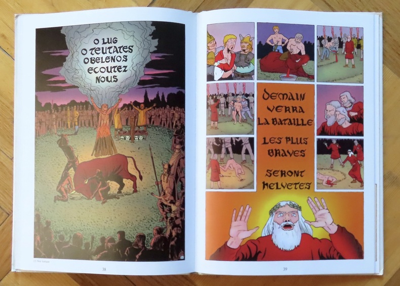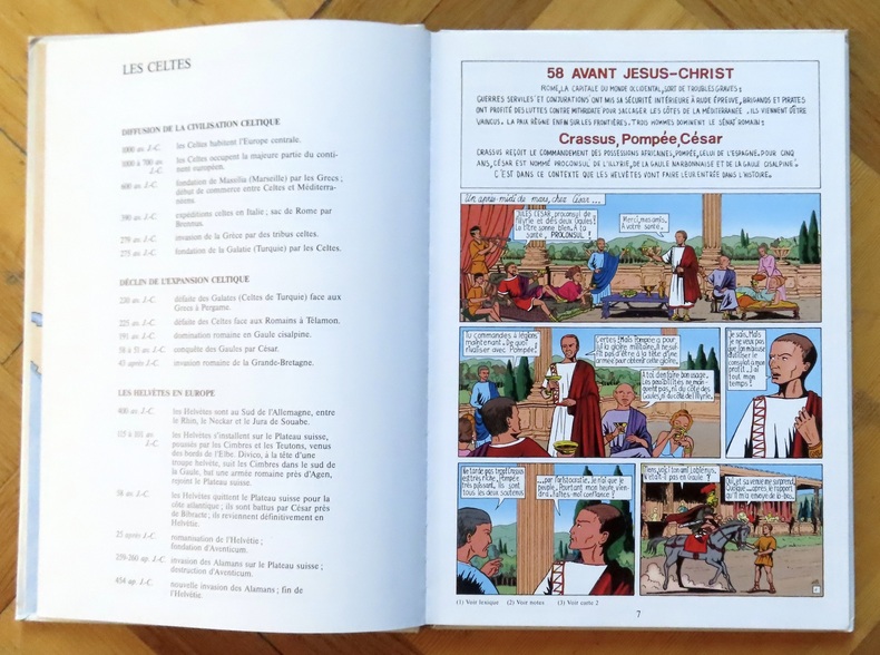 Rare ensemble, complet en 5 volumes, de cette épopée en bande dessinée, se terminant par des dossiers pédagogiques illustrés. Le premier volume démarre en -58 (la conquête romaine, Divico et César) et l'on découvre au fil des tomes la fin de l'Helvétie romaine (259-260 après J.C.), la bataille de Morgarten (15 novembre 1315), Nicolas de Flüe et enfin la Réforme.