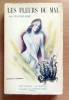 Une illustration art déco des Fleurs du Mal. Un des 10 exemplaires de tête sur Japon Impérial (n° 4), agrémenté d'une aquarelle originale inédite signée intitulée « Épigraphe pour un livre condamné » et d'une suite en noir. Suivent 25 sur vélin avec un dessin original ayant servi à l'édition et une suite en noir, puis 450 exemplaires sur vélin, pour un tirage total de 485 exemplaires. Il est enrichi d'une autre aquarelle rehaussée au crayon de papier datée 1906 vraisemblablement d'une autre main, naïve, et de 3 lettres autographes signées d'André Domin à René Kieffer. Deux en 1918 au sujet de la dimension des pages pour Les Fleurs du mal ainsi que les aléas de la vie d'André Domin et une de 1930 évoquant des comptes financiers à apporter au SPAD. Il est revêtu d'une reliure éditeur à décor à la plaque à froid de fleurs inscrites dans un encadrement losangé (Sanjuan planche LI). L'édition présente 26 illustrations hors-textes au trait, colorées au pochoir avec le titre du poème au-dessous et 52 culs-de-lampes en noir. René Kieffer publie par ailleurs 100 exemplaires d'un tiré-à-part des planches de Domin. André Domin, connu pour avoir fondé avec Marcel Genevrière la maison de décoration d'Avant-garde « Dominique », exaltant la densité du matériau, fut tout d'abord illustrateur de presse et de publicité. Il participa pour les éditions Kieffer à deux ouvrages, Litanies de la Rose de Remy de Gourmont publié en 1919 (Sanjuan p. 666) et Les fleurs du mal de Baudelaire en 1920. Dans un style résolument Art déco, Domin n'hésite pas à moderniser son trait, pour au possible le dépouiller. Recueil de poèmes des plus célèbres, Les fleurs du mal est, dès le début du XXe siècle, un incontournable pour l'édition de luxe. Malgré procès et censure, il est ce jour considéré comme une oeuvre capitale de la poésie moderne. Monod 1075 ; Sanjuan 19 (planches I, II). Dos insolé, quelques légères traces violettes marginales aux pp. 186-187