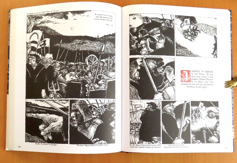 "L'histoire du mouvement sectaire protestant révolutionnaire des anabaptistes de Münster est une histoire vraie, peu connue, mais très riche de sens. Elle se passe dans l'Allemagne de 1493 à 1536, à l'époque de Luther, d'Erasme et de Dürer. Souvent qualifiés de proto-communistes, les anabaptistes de Münster ont développé une idéologie de la révolution étonnamment moderne, qui trouve de troublantes similitudes avec plusieurs idéologies de notre XXe siècle. Dans l'ivresse de leur action, les anabaptistes ont cru toucher de près le faîte de la victoire politique. Mais tout, très vite, s'est précipité vers l'échec, et les anabaptistes furent abandonnés puis trompés par leurs premiers compagnons de route, les luthériens. L'Histoire consacra, comme on le sait, les luthériens. En retenant les noms de Luther et de Melanchthon aux dépens de ceux de Joss Fritz, Thomas Müntzer ou Jan van Leiden, l'Histoire a donné raison aux révolutionnaires qui ont su se détourner de l'option radicale, trouvant plus judicieux de pactiser avec les forces politiques dominantes. La véritable défaite politique fut subie par les anabaptistes, anéantis pour ne jamais avoir fléchi, ni accepté la moindre concession. "