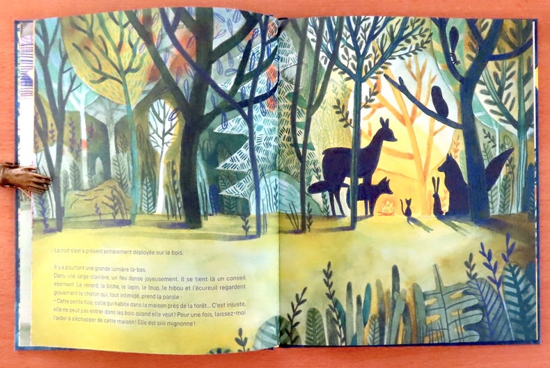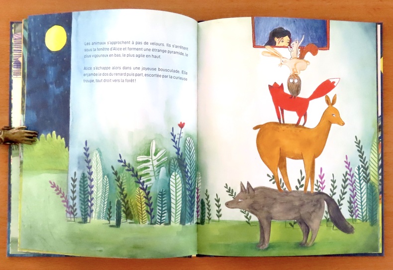 "Par une douce soirée d'été, un petit chat sauvage invite Alice à découvrir la forêt. Elle escalade alors les arbres avec l'écureuil, dégringole les talus à la suite du loup, hume les fleurs des bois aux côtés de la biche et, surtout, respire la nuit. "
