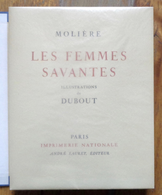 André Sauret, 1954. Grand in-8 broché, couverture imprimée rempliée, pergamine d'éditeur, sous chemise et étui bleus, titres et décors dorés au dos de la chemise. En belle condition. Illustré de 24 aquarelles de Dubout, coloriées à la main par Maurice Beaufumé.
