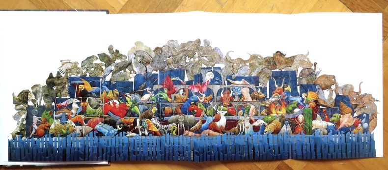 "L'Arche de Noé, c'est une histoire que tut le monde connaît. Mais as-tu déjà pensé à l'organisation qui a été nécessaire à ce formidable voyage ? Tous ces animaux, grands, moyens, petits, venus des airs, de la terre ou des eaux, qui doivent trouver leur place dans un seul bateau ! Heureusement que la petite-fille de Noé est là pour aider son papi."