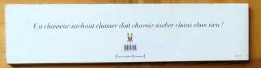 "Un chasseur sachant chasser doit savoir chasser sans son chien. Mais un chien aussi ! Mais oui ! Un chien chasseur sachant chasser doit savoir chasser sans son chasseur ! Mais est-ce qu'on peut dire qu'un chasseur qui chasse avec son chien ne sait pas chasser ? Pour ça, il faudrait demander au lapin. Au lapin chassé, pas au lapin chasseur". Sur le thème du célèbre virelangue, Bernard Azimuth a écrit un texte, qui est à l'origine un sketch, plein d'humour, de jeux de mots, avec une langue qui fourche de plus belle, et où l'on ne sait plus qui est le chacheur, pardon le chasseur et le chaché... Pour mettre ce texte en images, Henri Galeron a créé de magnifiques scènes, avec des paysages façon peinture du XVIIe siècle, dans lesquelles le comique des personnages et la drôlerie des situations détonnent. Un livre qui devrait autant plaire au "chacheur" qu'au "chaché" ! - Exemplaire agrémenté d'un envoi autographe signé de l'illustrateur, Henri Galeron.