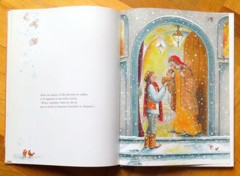 Un pauvre cordonnier chante tout le jour en travaillant. Ce faisant, il dérange son voisin, un homme très riche, qui lui propose de l'or en échange de son silence. Le cordonnier finit par accepter. Mais aucun trésor ne peut remplacer sa joie de vivre à présent disparue... Également connue dans la version qu'en a faite Jean de la Fontaine, cette fable d'Ésope n'a rien perdu de sa profonde sagesse.