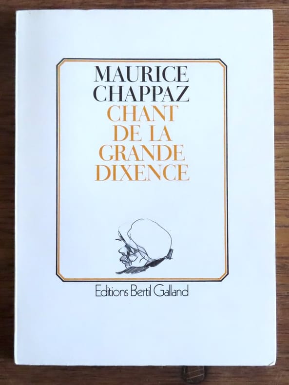 Payot, Lausanne 1967. Poème de Maurice Chappaz, dessin d'Albert Chavaz et 10 photographies d'Oswald Ruppen. Ce tirage de luxe du "Chant de la Grande Dixence", de Maurice Chappaz, sixième volume de la Collection poétique d'écrivains romands publiée par les Editions Payot Lausanne, a été achevé d'imprimer en décembre 1967. Il comprend 110 exemplaires nominatifs hors-commerce et quatre-vingts exemplaires numérotés de 1 à 80.
