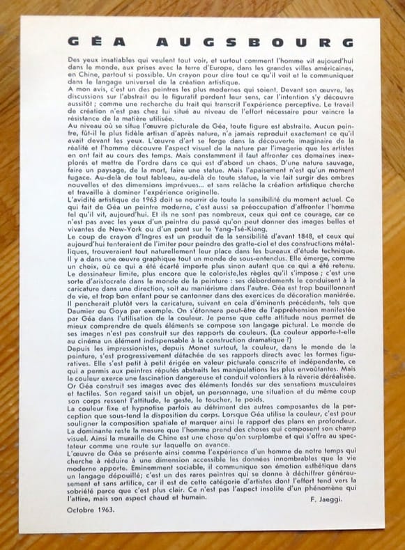 Bale, Paris, Lausanne, Editions Vineta 1951. 17,5x22,5 cm. env. 80 p.n.ch. avec 70 reproductions d'après les dessins de Géa Augsbourg et un dessin original. Broché, couverture rempliée avec la bande de lancement