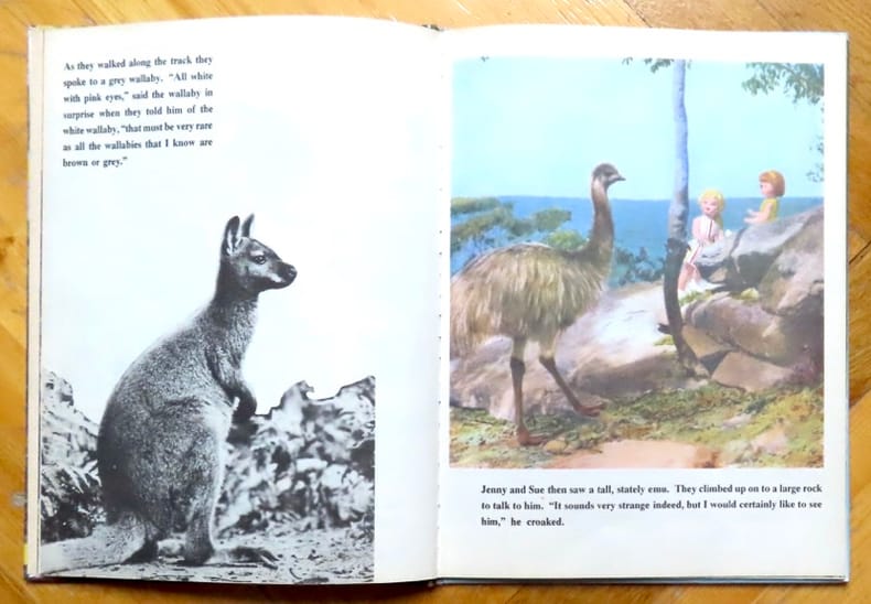 Caringbah, Young Australian Books, True Australian Series, [1965?] Grand in-8, cartonnage couleurs. Une mise en situation photographique de poupées et animaux d'Australie.