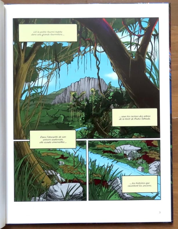 Dans cette histoire, vous allez découvrir les aventures d’une fourmi, lancée dans des aventures fantastiques, souvent magiques, qui vont l’amener à découvrir un trésor. Celui-ci va lui permettre de sauver la forêt dans laquelle elle vit et qui est en grand danger de destruction. Pour combattre tous les dangers qu’elle doit affronter, elle s’entourera de plusieurs autres animaux de la forêt et même d’une fleur !Le récit s’inspire d’une situation d’actua- lité qui consiste à sauver et à préserver une forêt tropicale du nom de Pedra Ta- lhada, située dans le Nordeste brésilien. Après une trentaine d’années de lutte, Anita Studer et l’association Nordesta, créée à cet effet, sont parvenues à la faire classer en Réserve Biologique.
