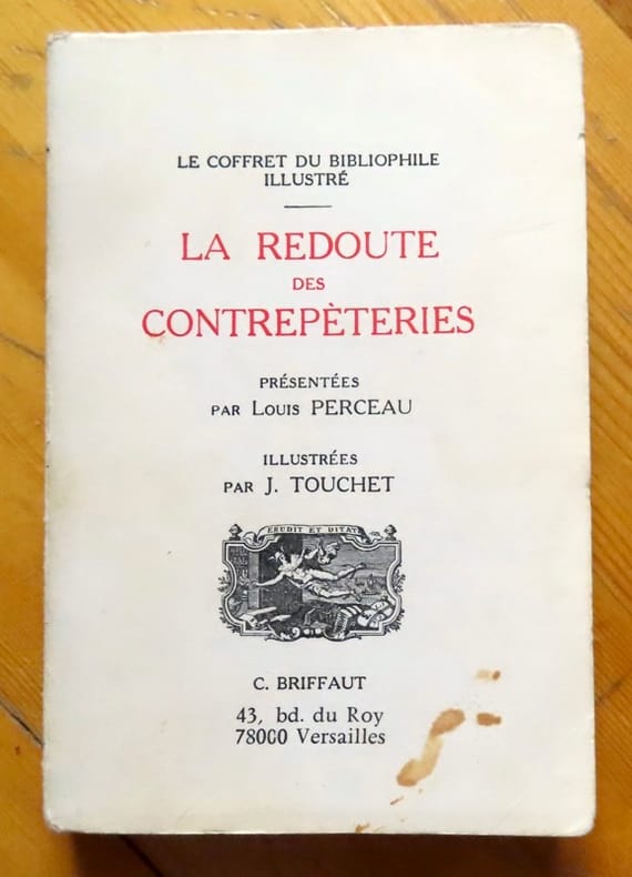 La redoute des contrepéteries présentées par Louis Perceau illustrées par J. Touchet. (Paris: C. Briffaut, 1955). [Relié] [M.C.: curiosa, contrepeterie, jeux de mots]