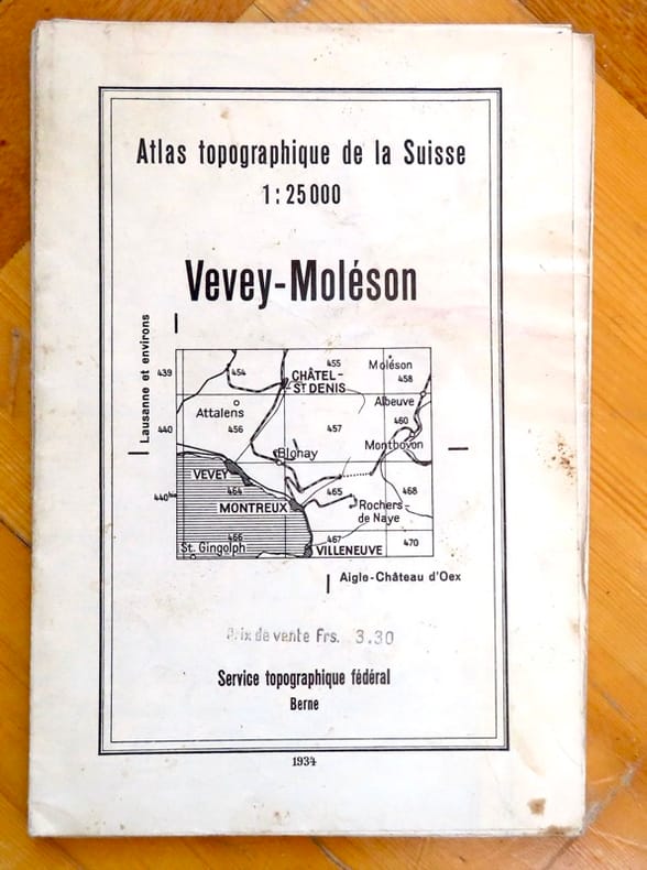 Berne, Service topographique fédéral / Atlas topographique de la Suisse, 1934. Carte au 1:25 000, au format ouvert 93,5 x 79 cm.