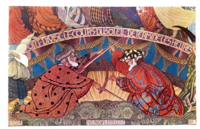 On parle donc de la fresque réalisée en 1922 par Ernest Biéler sur le fronton de l’Hôtel-de-Ville du Locle : « Les hommes ont divisé le cours du soleil, déterminé les heures ». Les horlogers et les dentellières symbolisent l’artisanat, les astronomes, la mesure du temps. De nombreuses représentations allégoriques complètent le haut de la fresque. En bas de la fresque est inscrit l’adage latin : «Nil novi sub sole », « Rien de nouveau sous le soleil ».