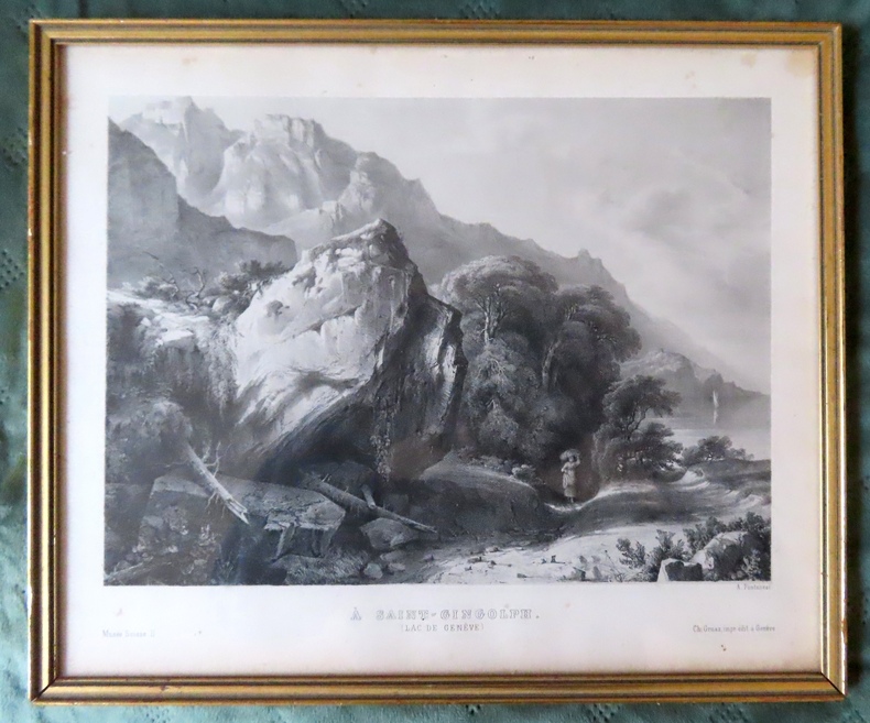 Genève, Gruaz. [1853]. Lithographie, cadre doré aux dimensions 30 x 26 cm. Menues rousseurs.