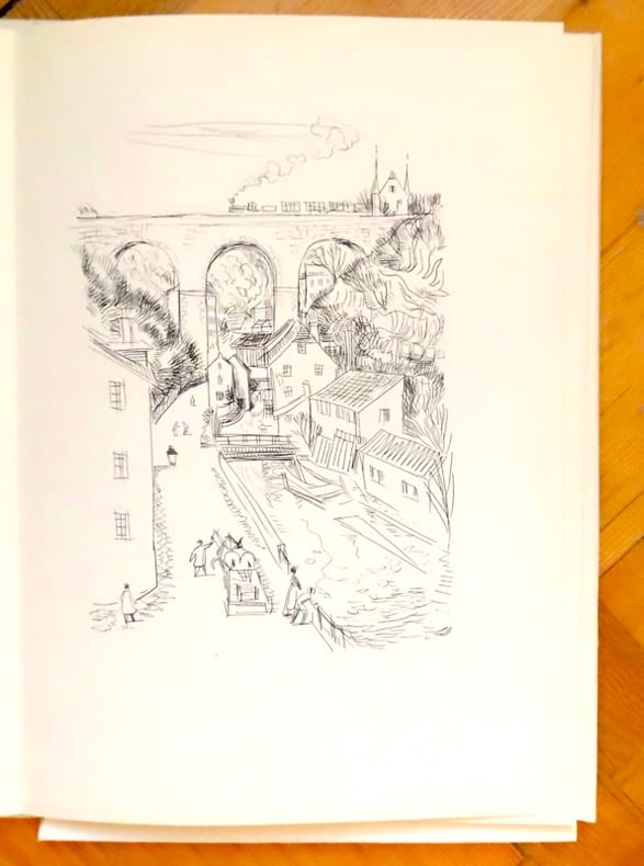 Edition hors commerce au tirage limité et numéroté 1/900 exemplaires sur papier vélin sans bois. Illustré de pointes-sèches lithographiques de Marcel North. D'après un petit papillon glissé à l'intérieur, cet ouvrage a été classé parmi les plus beaux livres suisses de l'année 1952. Exemplaire en parfaite condition.