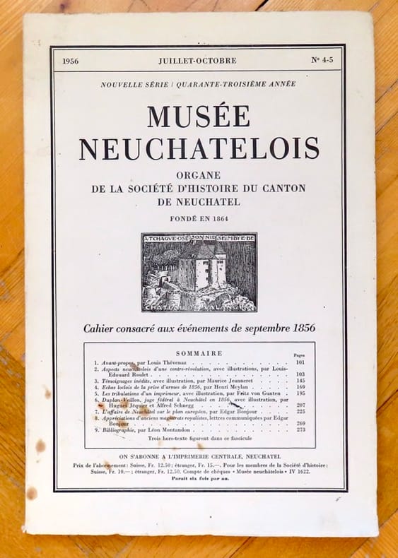 Neuchâtel, Imprimerie Centrale, 1956. In-8 broché, couverture illustrée (quelques rousseurs au premier plat). Illustrations in-texte en noir, 3 hors-textes.