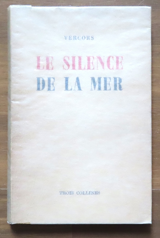 Jean Bruller s'engage dans la Résistance aux côtés de Pierre de Lescure : ils sont chargés de réaliser, pour l'Intelligence Service, un réseau de renseignements et de filières d'évasion d'agents et d'aviateurs anglais. Le réseau découvert, ils écrivent ensuite des articles pour une revue communiste clandestine, La pensée libre, qui souhaite s'ouvrir à des rédacteurs de toutes tendances. Lescure a rédigé lui-même une nouvelle et pousse Bruller à en écrire une à son tour, lui qui s'est réfugié dans le silence de son village de Villiers-sur-Morin. Un silence trop pesant pour l'illustrateur, qui se change, en quelques semaines, en écrivain et rédige Le Silence de la mer. La rédaction est terminée à la fin de l'été 1941 et Vercors en fait la première lecture à son ami Lescure : « pendant plus d'une heure il resta impassible... Enfin il releva la tête, posa sur moi un regard brouillé, humide, et prononça : ‘De longtemps je n'avais plus ressenti une pareille émotion' ». Reste à le publier. Sous pseudonyme évidemment, déjà trouvé : « Jean Bruller se trouvait à l'Armée des Alpes, du côté de Romans-sur-Isère, lorsque l'armistice de juin 1940 fut annoncée. Son regard se posa sur les monts du Vercors dans lequel il vit, avec la prescience du poète, une citadelle de Liberté. De sorte que le nom de ‘Vercors' se présenta à son esprit quand il eut à signer d'un pseudonyme significatif le premier des écrits français que la résistance ait inspiré » (Jacques Dalloz). Par l'intermédiaire de l'imprimeur Ernest Aulard, Bruller trouve à Paris un petit atelier boulevard de l'Hôpital, celui de Georges Oudeville, spécialisé dans les faire-part et les cartes de visite. Bruller envisage un livre de petit format, d'une centaine de pages, à la finition soignée. Aulard fournit papier et caractères. La machine, une minerve, ne permettant de tirer que huit pages à la fois, le travail d'impression prend près de trois mois et, chaque semaine, Bruller apporte huit pages du manuscrit, détruites au fur et à mesure de l'avancement de la composition, et repart avec les pages imprimées, qui sont déposées boulevard Raspail, dans des bureaux où travaille une amie de Lescure, puis, après une perquisition allemande, dans un café, boulevard de la Gare. Fin janvier 1942, le travail de presse est achevé. Yvonne Paraf, une amie de Bruller, se charge du brochage et Vercors lui-même collera les couvertures. Le résultat est un livre de qualité, à la typographie parfaite. Bruller a fait, comme il le dit lui-même, de « la belle ouvrage ». En février 1942, 350 exemplaires sont constitués : 100 pour la zone Nord, rapidement diffusés sous le manteau, et 250 pour la zone Sud : 200 exemplaires seront saisis par les Allemands alors qu'ils transitaient vers Lyon. Personne ne soupçonnera jusqu'en 1945 qu'il est l'auteur de son livre (ni Aulaurd ni Oudeville ni même sa propre épouse ne sont au courant) et les rares initiés, une petite dizaine, garderont le secret. En raison de cette diffusion réduite - seuls 150 exemplaires purent être distribués -, le coup d'éclat demeure sans lendemain dans un premier temps. Mais, très vite, au gré des multiples rééditions clandestines qui vont suivre, d'abord à Londres, puis en Suisse, en Afrique du Nord, aux États-Unis, au Liban et jusqu'au Sénégal, Le Silence de la mer devient vite le texte emblématique de la Résistance, au même titre que son pendant poétique, « Liberté » d'Éluard. Les deux titres seront par ailleurs réunis dans le numéro 4 de La Revue du monde libre, édité en avril 1943 à Londres. Très bel exemplaire, en parfaite condition.