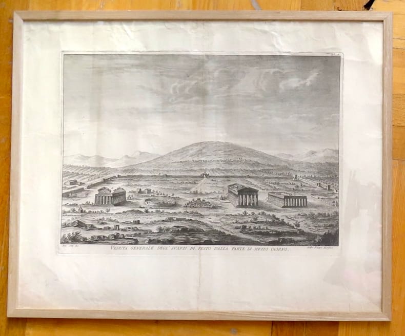 [Naples], Appresso Filippo Morghen [ca. 1775]. Eau-forte, sous cadre de baguettes claires, plexi - dimensions du cadre: 52 x 42 cm. Signée dans la cuvette « Ant. Jolli dis. » et « Appo. Filippo Morghen ». Pli transversal à la planche, bord supérieur comportant plusieurs plis (voir image). En l'état.