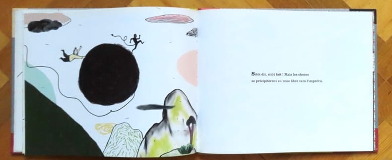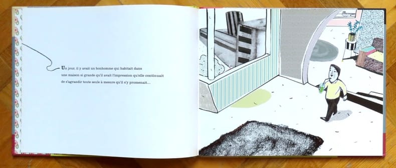 Un bonhomme vit seul dans une maison immense. Une maison grande comme l'esprit et qui s'agrandit à mesure qu'on l'arpente... Il occupe ses journées à explorer sa maison, dont il est très fier. Il aime particulièrement la salle du trône, dans laquelle il peut méditer et se sentir important.Un beau jour, une drôle de créature qui affirme être le diable vient perturber sa vie bien tranquille. Le bonhomme s'empresse de la chasser car il n'aime ni être dérangé, ni partager sa maison. Mais lorsqu'une énorme pelote noire vient encombrer ses couloirs, le bonhomme a bien besoin d'un peu d'aide... A contrecœur, il fait appel au petit diable. Bien plus serviable qu'il n'y paraît, le diable aide le bonhomme à s'en et, par la même occasion, à partir à la découverte du monde... Car les choses , surtout les grosses pelotes, ne se déroulent jamais comme elles devraient !