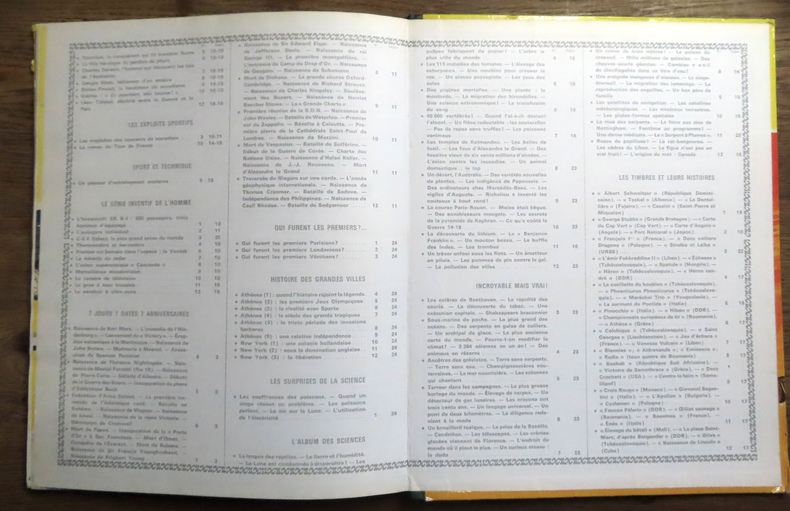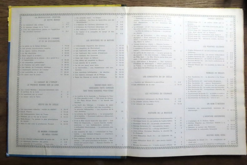 Au sommaire de ces numéros (liste forcément non exhaustive): Ils marchent sur la lune ! - Les soucoupes volantes: mythe ou réalité ? - Rolls-Royce, la voiture la plus prestigieuse du monde - Sous la mer avec le Professeur Piccard - Fourmis et abeilles - Le sourire de la Joconde - Lewia Carroll, mathématicien - Les premiers vainqueurs du Mont Cervin - Les timbres et leur histoire... Pour le reste, on vous laisse lire les sommaires sur le images !