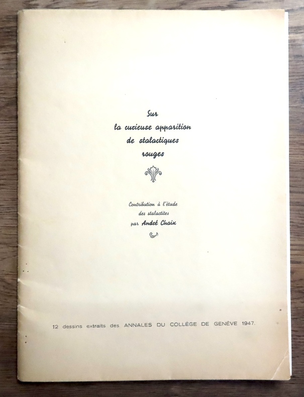 Publication non commerciale, exemplaire numéroté (89) sans mention de tirage. Rare témoignage de l’humour scientifique genevois d’après-guerre. André Chaix, professeur de géographie physique et pédagogue, livre ici un savoureux texte pseudo-scientifique, témoignage attachant de la vie intellectuelle du Collège au sortir de la guerre, mêlant érudition et fantaisie. Une jolie perle rare !