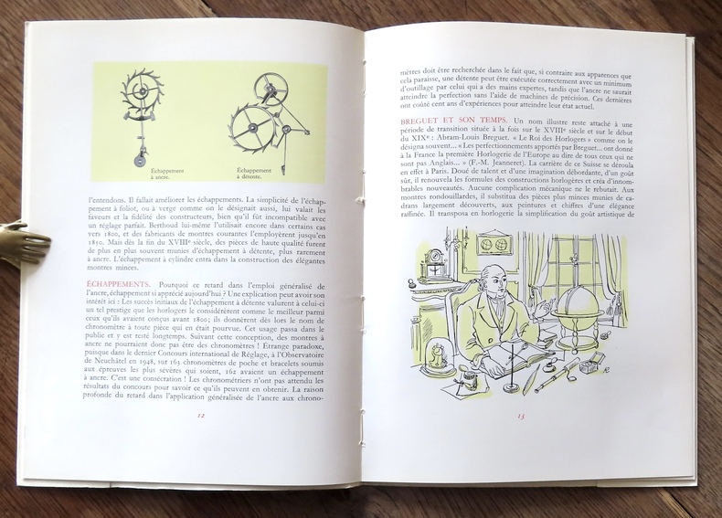 La Chaux-de-Fonds (Suisse), Chambre Suisse de l'Horlogerie, 1957. 17 x 23, 29 pp., nombreuses illustrations en N/B et dessins en couleurs, broché, couverture à rabats, très bon état (sauf cachet d'ex-propriétaire).