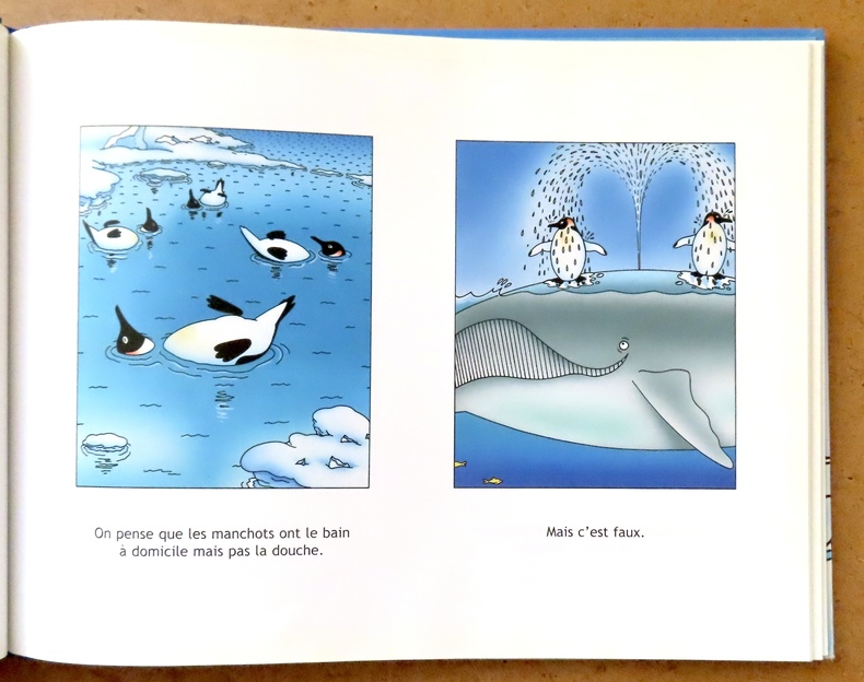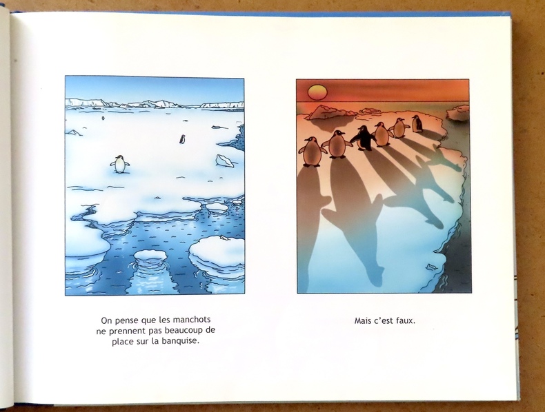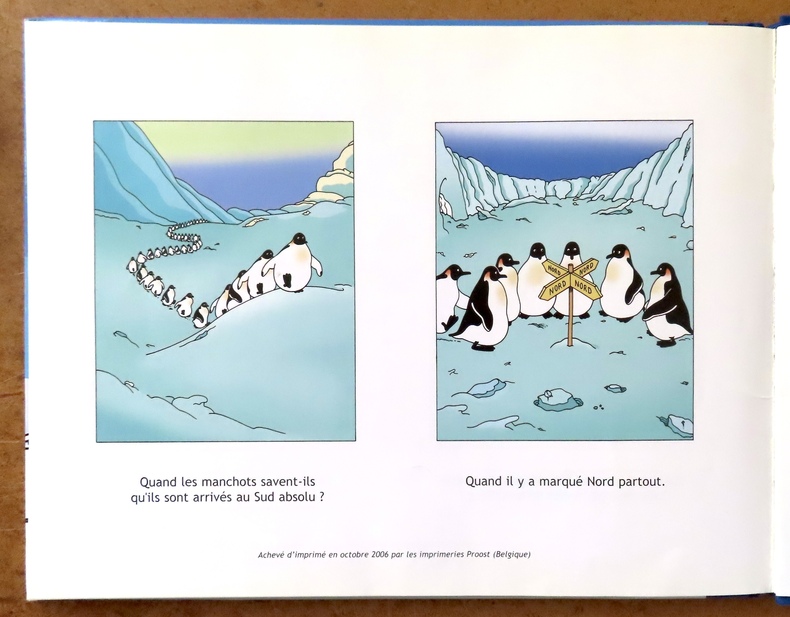 "Cet album reprend l'essentiel des gags de trois albums : l'un édité en France il y a 17 ans ("Drôles de manchots", ed. Hachette 1989), l'autre édité au Japon il y a 11 ans ("Drôles de manchots" 2 ed. Seibu/Libroport, Tokyo), et le troisième inédit. Il a été accueilli par Luc Jacquet comme le versant humoristique du film "La Marche de l'Empereur", documentaire poétique et réaliste qui dévoile les conditions impitoyables et émouvantes de la reproduction des manchots au Pôle Sud. Cet album peut être lu de 5 à 105 ans !" Philippe Coudray