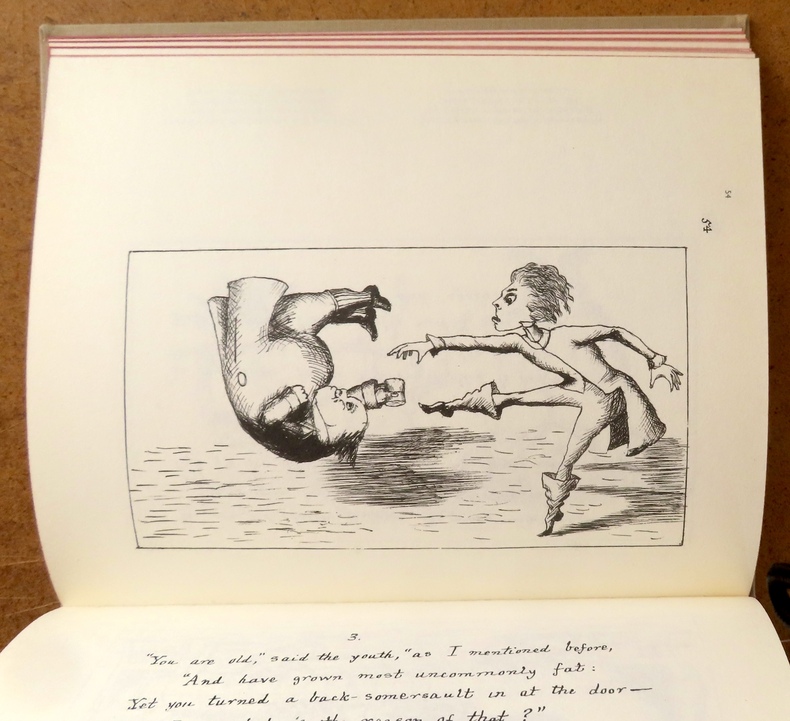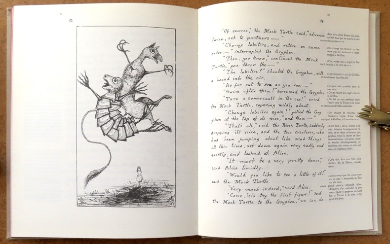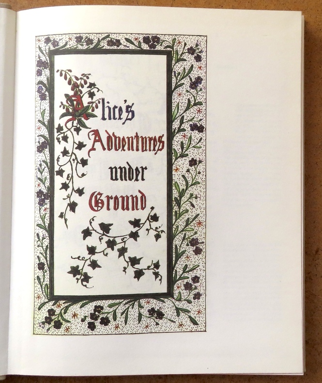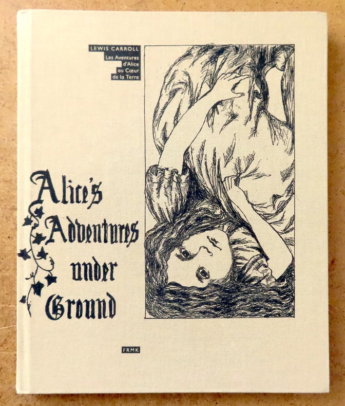 Editions FRMK / Belgique 2006. In-4 cartonnage éditeur pleine toile grise de 96 pages au format 24 x 19,5 cm. Couverture illustrée. Dos rond avec titre. Plats et intérieur frais, malgré un infime tassement en haut du dos. Textes et superbes illustrations de Lewis Carroll in et hors texte. Tirage en facsimilé du manuscrit original. Version bilingue anglais-français : Alice's adventures under ground / Les aventures d'Alice au cœur de la Terre. Edition originale belge en superbe état général.