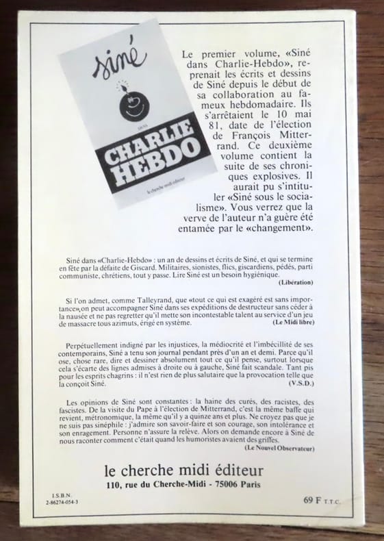 Rare recueil regroupant les contributions de Siné publiées dans Hara-Kiri Hebdo (1981–1982). Édition originale, fort peu courante.