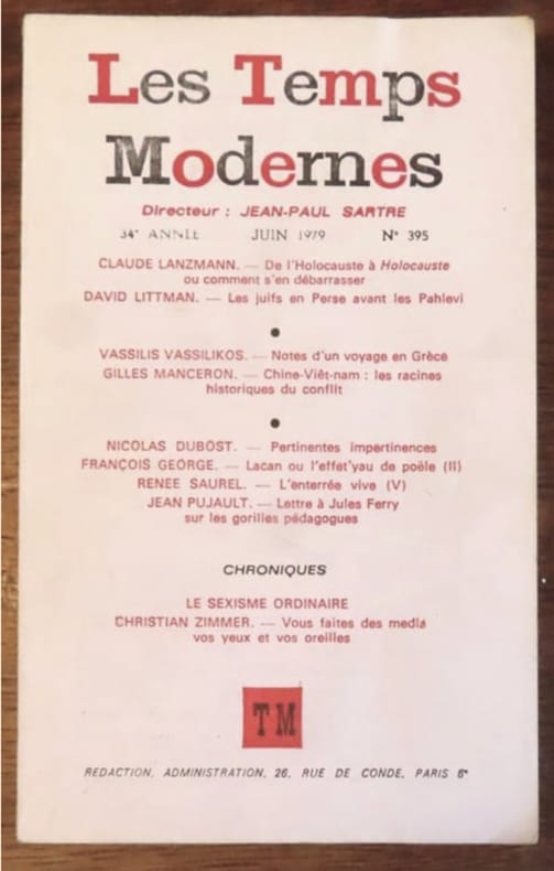 Holocauste - Les Juifs en Perse avant des Pahlevi - Chine-Viet-Nam, les racines historiques du conflit - Lacan - Le sexisme ordinaire, . . .