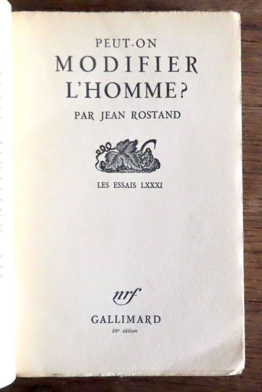 malgré une fausse mention de 3eme édition, il s'agit sans doute de la première édition Contents, Chapitres : Conquêtes et espoirs de la biologie - Homme et science - Peut-on modifier l'homme quelques rousseurs sur le dos et sur les pages de gardes, papier légèrement jauni, sinon très bon état