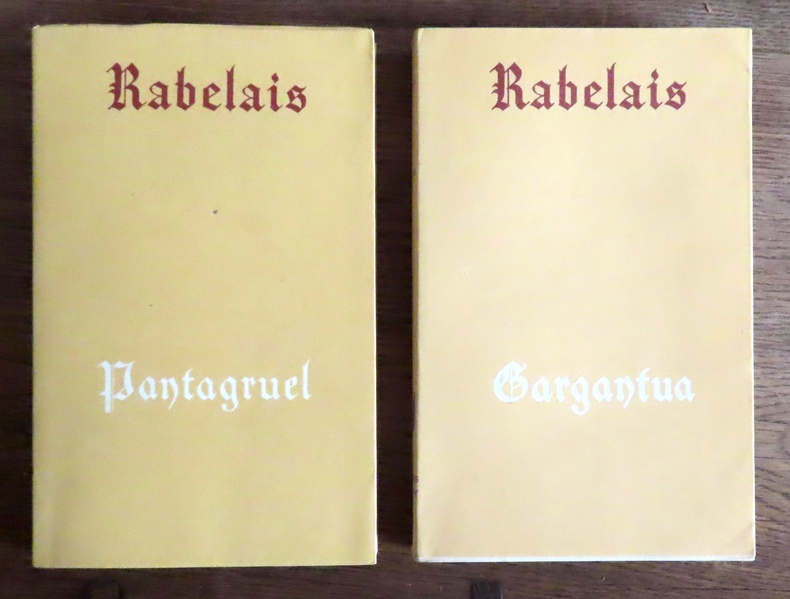 texte établi et présenté par Jean Plattard, 5 vol. in-12 reliure demi-basane brune, dos à 5 nerfs, couv. conservées, Les Textes Français, collection des Universités de France publiée sous les auspices de l'association Guillaume Budé, éditions Fernand Roches, Paris, 1929, 1946, 1929, 1929 et 1929, 219 pp., LXI-252 pp., 313 pp., 332 pp. et 389 pp. Rappel des titres : Pantagruel ; Gargantua (3e éd.) ; Le Tiers Livre ; Le Quart Livre ; Le Cinquiesme Livre, Lettres et écrits divers.