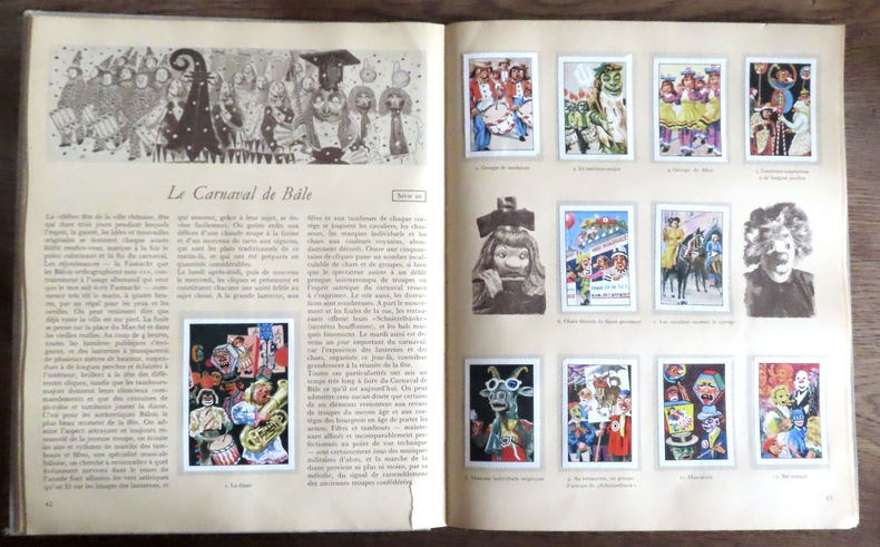Nestlé-Peter-Cailler-Kohler (NPCK), 1954. In-4 pleine toile grise avec titre et décor dorés, très légèrement défraîchie. 48 séries, bien complètes de leurs 11 images collées. Inscription et nom de possesseur à la page de titre, petite déchirure sans perte à la page du Carnaval de Bâle (voir image).