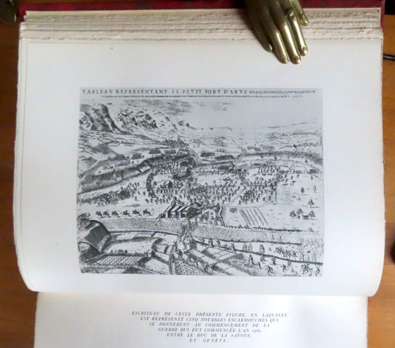 Genève, éditions du Journal de Genève, 1936 (achevé d'imprimer 1935). Grand et fort volume in-4, demi-chagrin bordeaux, dos à 5 nerfs, titre doré, couvertures et dos conservés. Mors frotté. Illustré de 20 hors-texte en noir et de figures in-texte, certaines à pleine page. Avec des oeuvres de E. Cottier, H. C. Forestier, reproductions de documents anciens. Cerise sur le gâteau: photographies de Boissonnas.