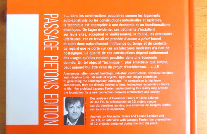 Monographie critique et conceptuelle consacrée à l’architecte Jacques Ferrier, l’un des architectes français contemporains les plus intéressants de la fin du XX et début du XXI siècle. Il s’agit d’une réflexion approfondie sur sa pratique architecturale et sur ses “stratégies du disponible”, c’est-à-dire une manière de travailler l’espace et la conception en réponse aux contraintes et potentialités du contexte réel.