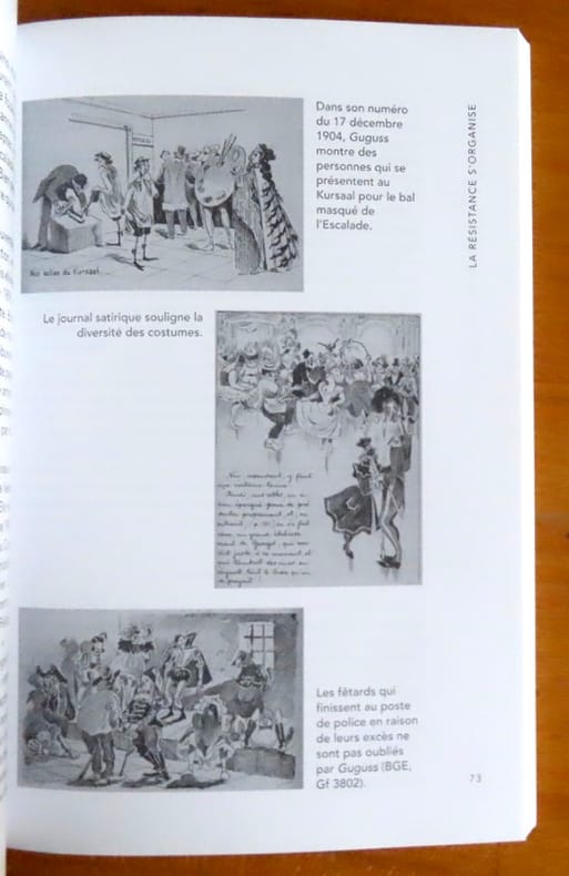 "Genève n’a pas toujours célébré l’Escalade autour d’un défilé historique. Entre les années 1860 et 1939, la fête avait avant tout la forme d’un carnaval. Alors que le canton connaissait une forte immigration et devenait majoritairement catholique, des dizaines de milliers de fêtards profitaient de l’anniversaire de la bataille de 1602 pour faire les fous lors de mascarades de rue et de bals masqués. Ils paradaient dans les Rues-Basses, s’invectivaient, badinaient, buvaient, dansaient au son de musiques diverses. Mais une partie des Genevois ne supportaient pas ces amusements. Patriotes et protestants, ils voulaient qu’on célèbre la victoire du 12 décembre 1602 en rendant grâce à Dieu et à la patrie. Se déguiser et se masquer, selon eux, ne pouvait se faire à ce moment de l’année. Ils fondent en 1906 une Association patriotique destinée à organiser des cortèges historiques pour reconquérir la rue laissée à « la masse flottante d’émigrés », selon les mots du Journal de Genève d’alors. Le combat a été mené par deux présidents successifs de l’Association des intérêts de Genève, Jules et Louis Roux. Ces deux frères ont déclenché une véritable guerre contre les mascarades de l’Escalade avec l’appui des milieux économiques, politiques et médiatiques. Face à des anonymes désorganisés, ils ont réussi à éliminer le carnaval pour lui substituer un cortège patriotique et des Fêtes de Genève plus propices aux affaires. Les vainqueurs n’ont rien fait pour garder le souvenir des vaincus. Il était temps de retracer la naissance, l’importance et la mort du carnaval de l’Escalade."