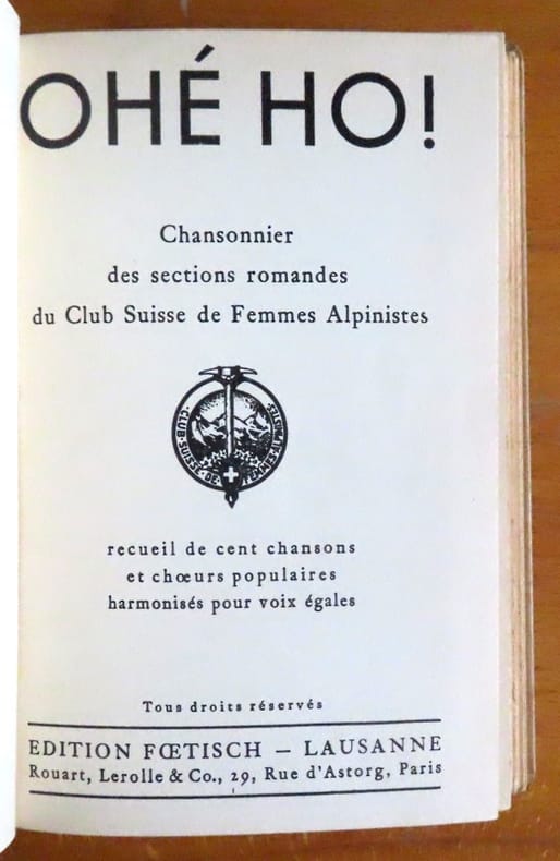 Lausanne, Ed. Foetisch, s.d., ca. 1935, pt. in-8vo, X, 185 p. de partitions, cachet sur p. de garde, L. Von der Weid, musique - radio, Fribourg, cartonnage original ill. d’un bois gravé par G. Billet.