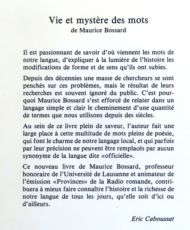"Il est passionnant de savoir d´où viennent les mots de notre langue, d´expliquer à la lumière de l´histoire les modifications de forme et de sens qu´ils ont subies. Depuis des décennies une masse de chercheurs se sont penchés sur ces problèmes, mais le résultat de leurs recherches est souvent ignoré du public."