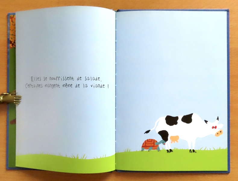 La tortue n'a pas de dents mais un bec, elle peut se cacher entièrement dans sa carapace, elle vit parfois cent ans... Un documentaire animalier par l'illustre professeur japonais, à destination des petits, où tout est dit avec simplicité et humour et illustré d'images impertinentes ou décalées - On aime !