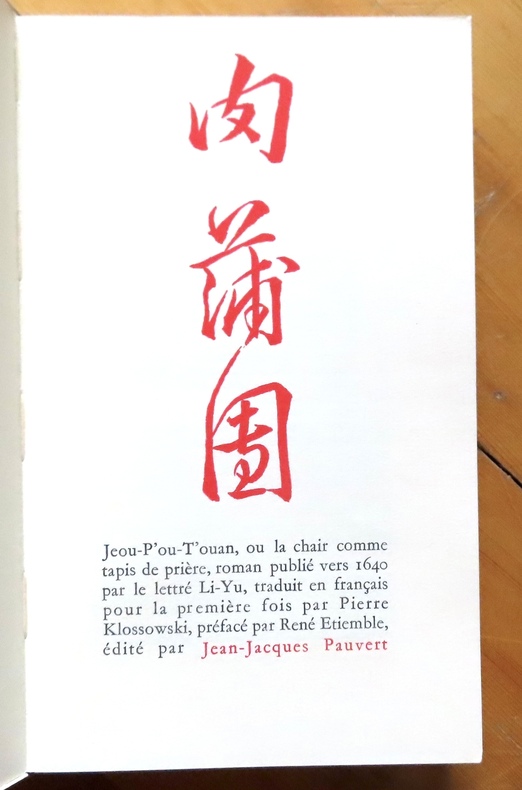 Paris Jean-Jacques Pauvert, Editeur 1963 in 8 (20,5x12,5) 1 volume broché, couverture imprimée en rouge et en noir, 316 pages [2]. Traduit en français pour la première fois par Pierre Klossowski. Préface par René Etiemble. Deuxième édition, celui-ci un des 2000 exemplaires numérotés sur papier vergé. Bel exemplaire ( Photographies sur demande / We can send pictures of this book on simple request )