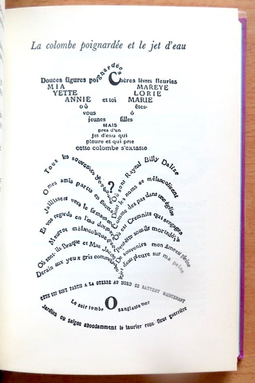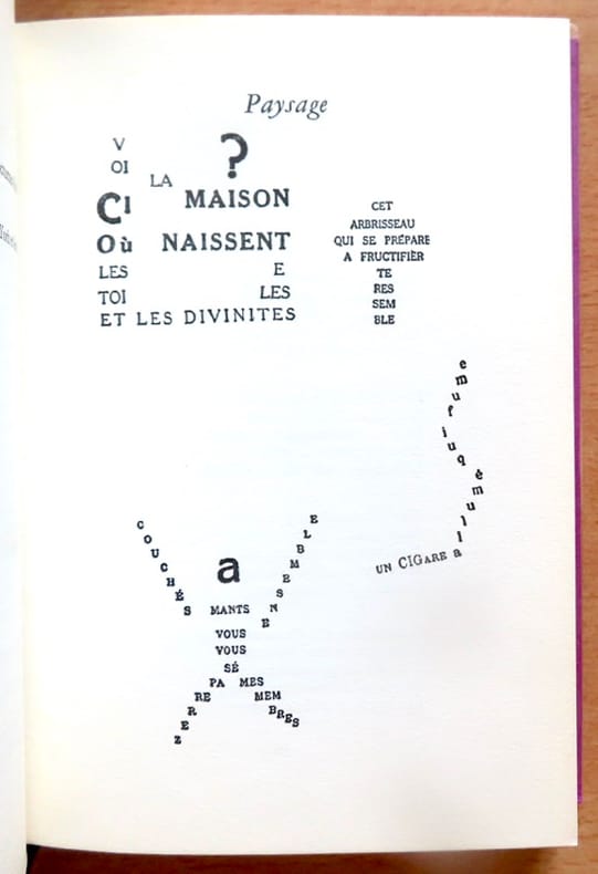 1951 P., Club des Libraires de France, 1951, in 8°, relié pleine toile décorée de l'éditeur, 266 pages suivies de 8 pages de calligrammes sur papier fort vert, rose, jaune, bleu.