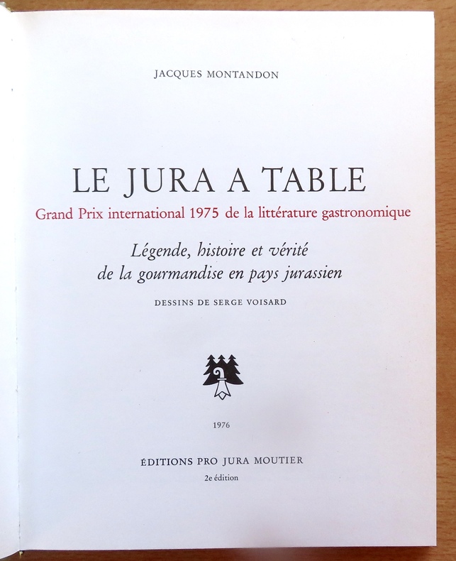 1975 Moutier, Editions Pro Jura, 1975.- Edition originale -Tirage de tête, l'un des 80 exemplaires H.C, numéroté, celui-ci N°XXVI, signés par l'auteur et l'illustrateur, accompagné de la série des 8 tirés à part In-4 - Cartonnage éditeur, sous jaquette illustrée en couleurs - In-4° - 161 pages - Illustrations en noir de Serge Voisard - Rassemble une soixantaine de recettes - Bon exemplaire - Envoi rapide et soigné