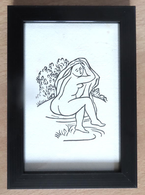 Gravure tirée à la presse à bras par Philippe Gonin, sur les bois d'Aristide Maillol. Dimension du cadre: 12 x 17 cm. Infimes rousseurs au papier.