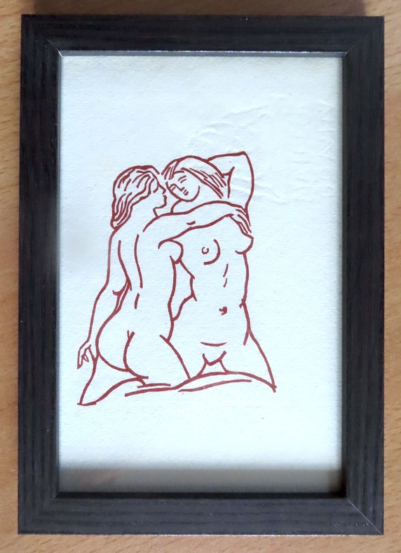 Gravure tirée à la presse à bras par Philippe Gonin, sur les bois d'Aristide Maillol. Dimension du cadre: 12 x 17 cm.