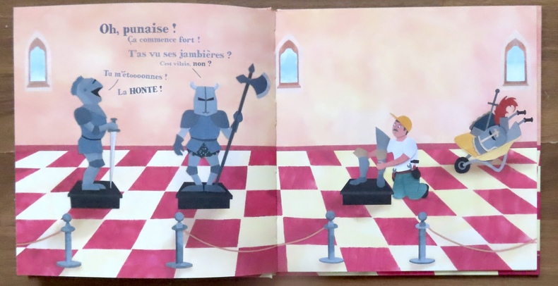 " - Hey ! T'as vu ? Y'a un nouveau ! - Gnark Gnark Gnark. On va rire ! " Scène de moquerie ordinaire : Gare à celui qui ne suivra pas la mode... même parmi les armures du musée ! - Un livre qui se moque ici malicieusement des moqueurs.