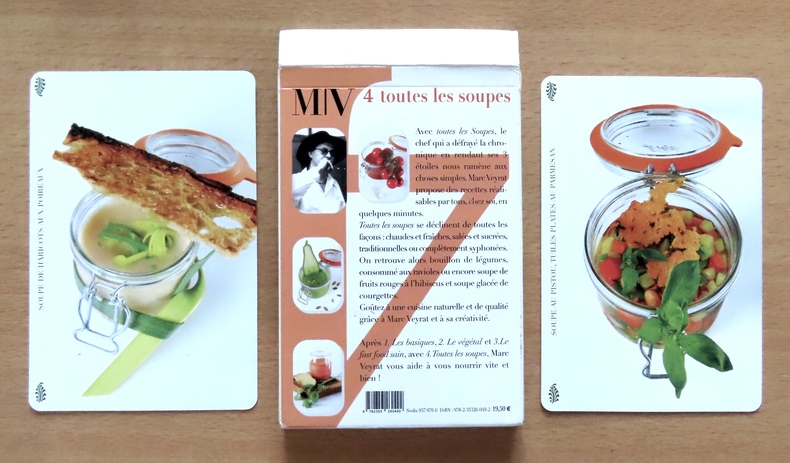 Agnès Viénot Editions, [2005]. 42 cartes au format 10 x 15 cm., coins arrondis, recto-verso, illustrées de photographies ma foi fort appétissantes. Sous boîte illustrée.