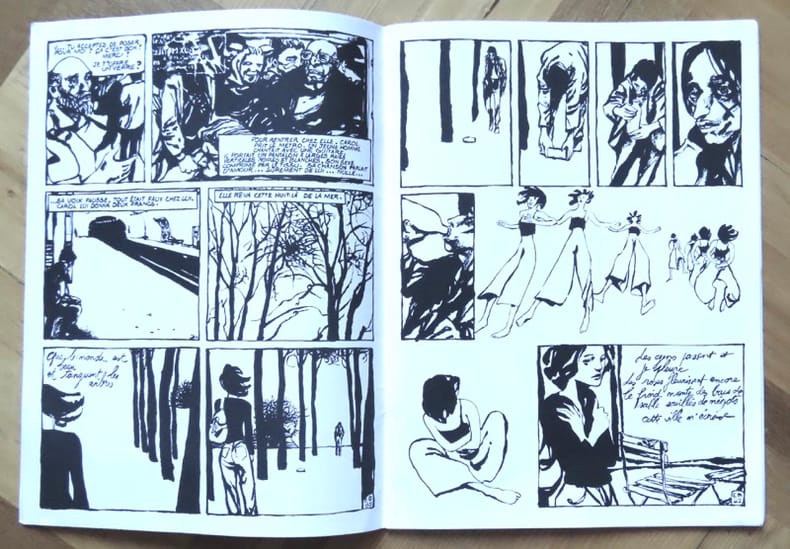 Editions L'Association / Collection Mimolette n° 44 de 2004. In-4 cartonnage éditeur souple, non paginé, d'environ 80 pages, au format 24,5 x 16,5 cm. Couvertures illustrées. Dos carré. Plats et intérieur frais. Dessins en noir et scénario de Edmond Baudoin. Etat superbe, proche du parfait. Deuxième édition, réimprimée un mois après l'originale. Exemplaire enrichi d'un superbe dessin original de Edmond Baudoin, situé au verso de la couverture.